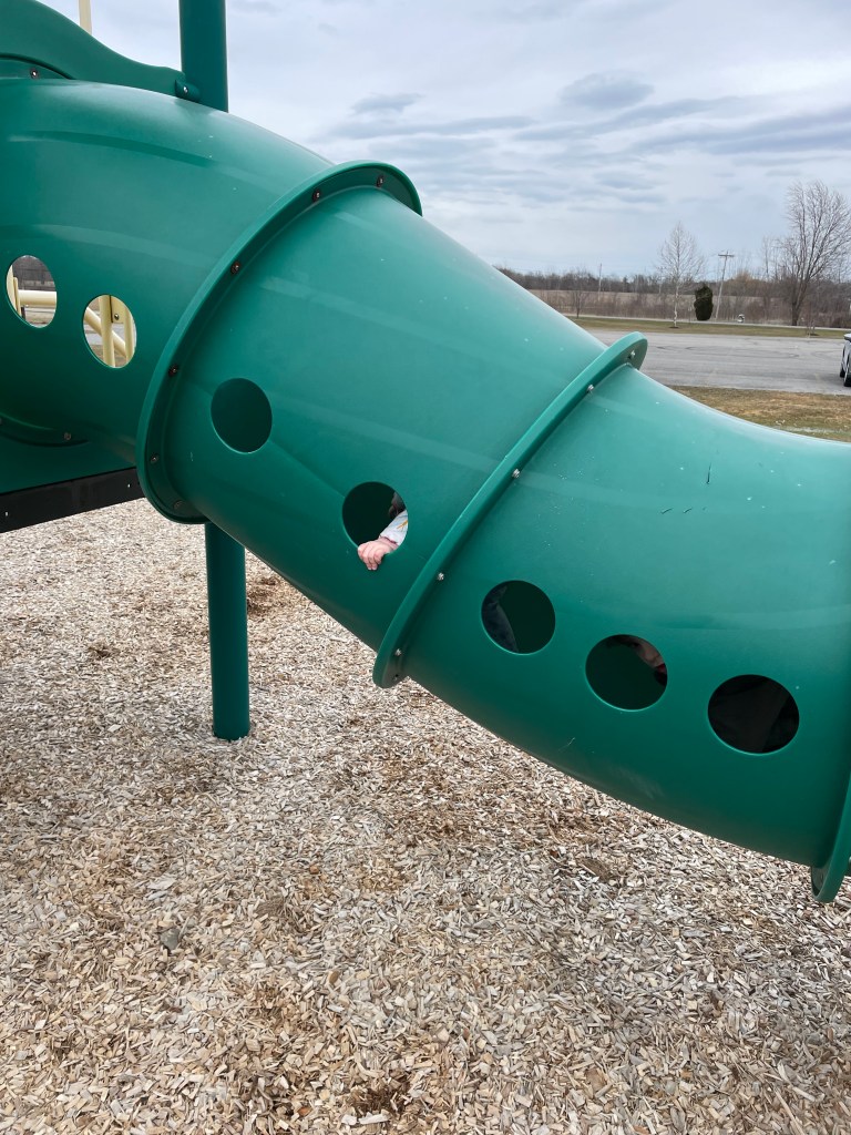 The other day, I took my kids to one of the local playgrounds and they enjoyed some time on the slides, rock wall and swings. On one piece of equipment, there is a tunnel as you can see in the photo. The tunnel has some holes on each side and is the only way a child can get to the biggest slide, unless he or she is big enough to climb up the rock wall.